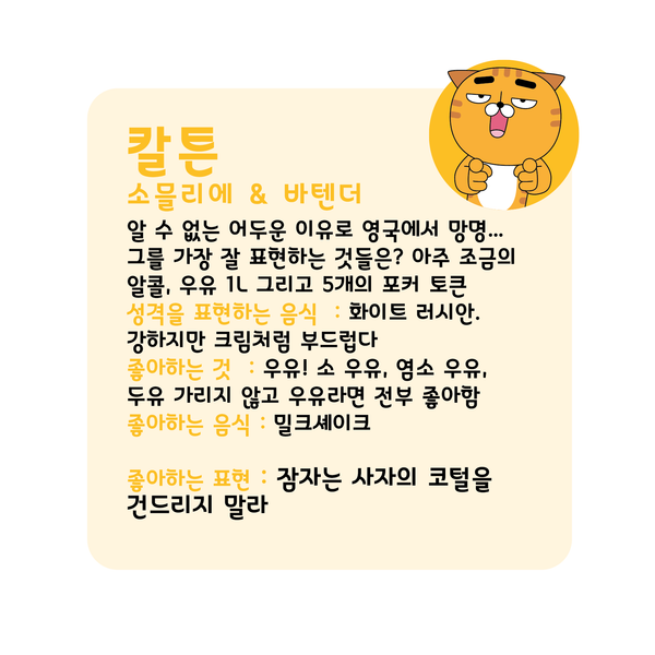 컵의 캐릭터마다 용량이 다릅니다. 셰프클럽을 대표하는 6명의 캐릭터들을 소개할게요 :