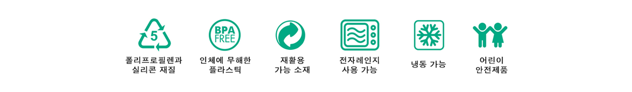 계량컵들은 전부 전자레인지와 냉동실 사용이 가능하며 인체에 무해한 플라스틱 (실리콘과 폴리프로필렌)으로 제작되었습니다.